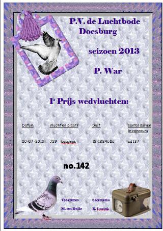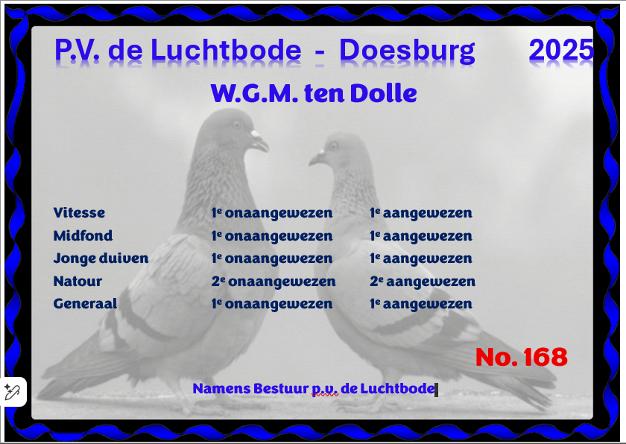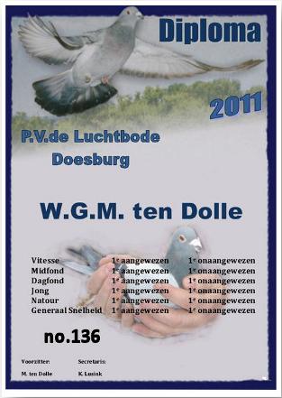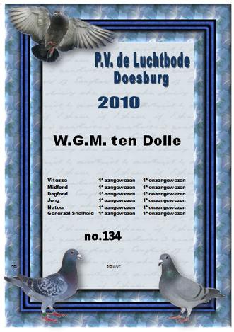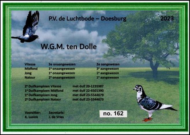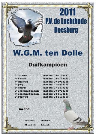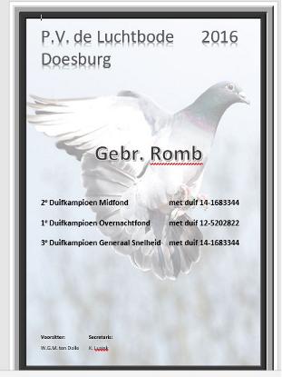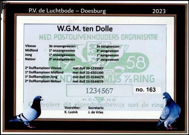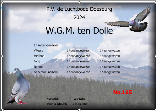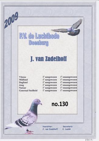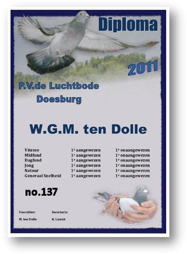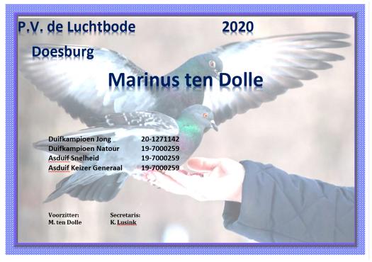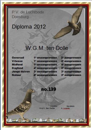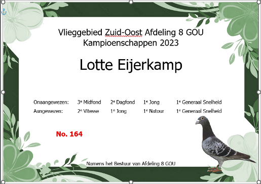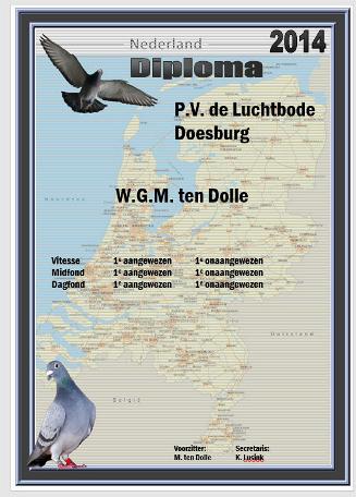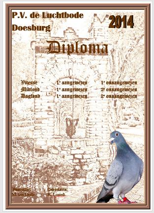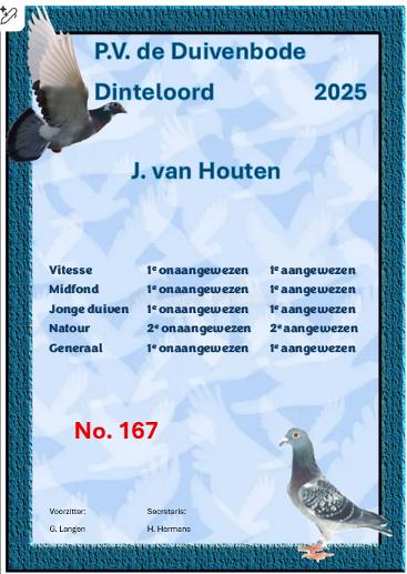De rest van de tekst is door u zelf aan te geven, bijvoorbeeld naam liefhebber, wedvlucht resultaten, kampioenschappen, ringnummers duiven etc. en wij verzorgen de opdruk op de diploma’s gratis voor u.